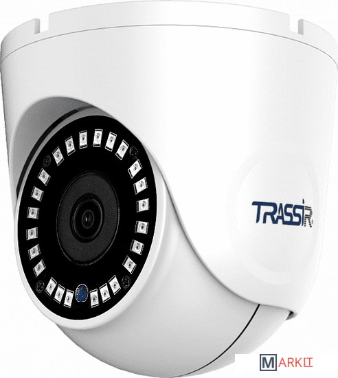 Уличная компактная вандалостойкая 5Мп IP-камера. Матрица 1/2.8" CMOS, разрешение 5Мп (2592x1944) @15fps, 4Мп (2592x1520) @20fps, 3Мп (2304x1296) @25fps, чувствительность: 0.003Лк (F1.8), режим "день/ночь" (механический ИК-фильтр), объектив 2.8 мм, поддержка кодека H.265+, real WDR (120dB), 3D-DNR, BLC, Defog, встроенный микрофон, слот для MicroSD до 128 Гб, питание PoE (802.3af) / 12V DC, -40°C ... +60°C, IP66, IK10, грозозащита - TVS 4000V, ИК-подсветка до 25 м. Поддержка TRASSIR Cloud.ПО TRASSIR в подарок! Базовая встроенная аналитика (пересечение линии, контроль области, детекция людей).