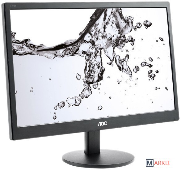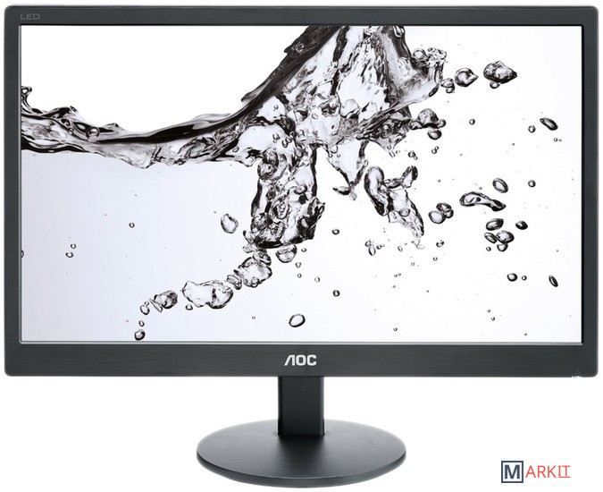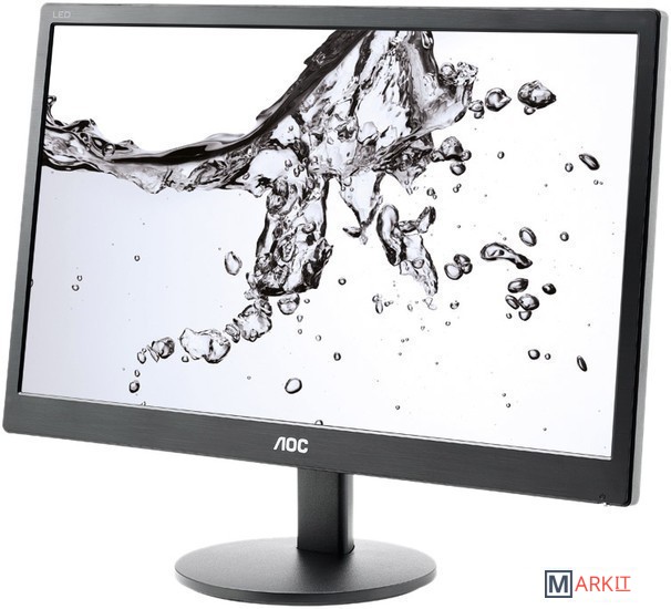 e970Swn оснащен 18.5" матрицей с белой светодиодной подсветкой, разрешением 1366x768, временем отклика 5 мс и уровнем динамической контрастности 20 000 000:1 (статическая - 700:1).