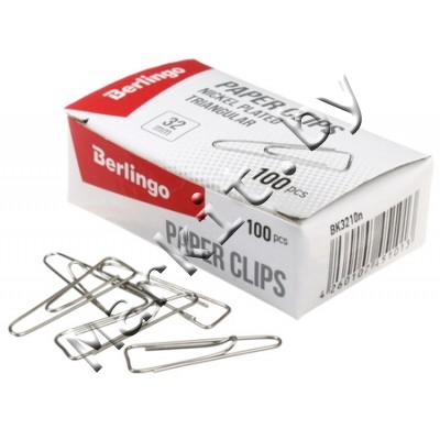 Markit » Канцтовары » Настольные принадлежности » Скрепки, кнопки, зажимы, булавки, резинки для банкнот » Скрепки Berlingo, 32 мм, 100 шт., треугольные с загнутым краем, никелированные